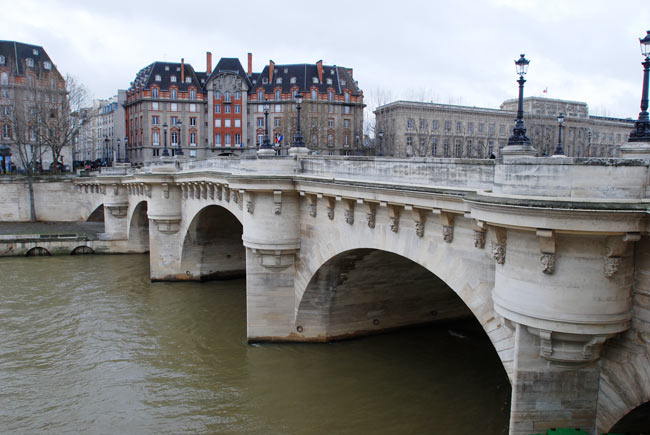 А мы направились дальше по набережной Сены. Уже потом узнала что эта набережная внесена в список объектов, охраняемых ЮНЕСКО. Постоянно приходилось напоминать себе что это не Темза и мы не в Лондоне – настолько две реки похожи, правда здесь здания вдоль реки более светлые. Вообще, даже несмотря на довольно холодный воздух, впечатление было очень оптимистичное и весеннее – на деревьях уже распустились почки, на клумбах пестрели яркие цветы… Путь по набережной оказался длиннее чем мы предполагали. На всех парах мы спешили успеть до закрытия к известному собору Нотр дам де Пари – Собору Парижской Богоматери, находящемуся на острове Сите посередине реки. Не знаю почему я наивно думала что в таком известном месте не будет очереди – прибежав туда за полчаса до закрытия, мы обнаружили, что очередь протянулась по диагонали через всю площадь перед собором. Ограничившись фотографированием его снаружи, мы решили вернуться сюда следующим утром.