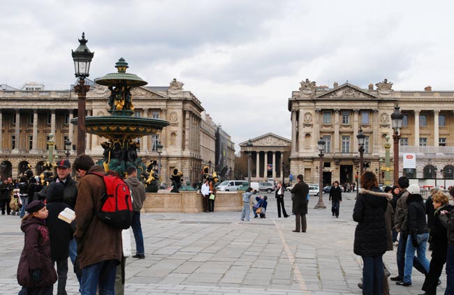 Прошли по Люксембургскому парку и дальше мимо Лувра в парк Тьюльри, спланированный тем же архитектором, который занимался планировкой Версальского парка. Парк ведет от Лувра к площади Согласия, на которой когда-то происходили кровавые революционные события. А сейчас там тихо и спокойно, в центре находится фонтан и “подаренный” египтянами луксорский обелиск, двойник которого находится в Лондоне. Щедрый народ был эти египтяне, сколько всего “надарили” французам – на треть Лувра хватило :). И опять немного елисейских полей, и снова при подходе к ним начала портиться погода – заколдованное это место, Елисейские поля :). Завершили день прогулкой на речном трамвайчике по Сене до Нотр дама и обратно.