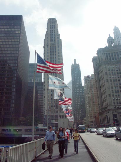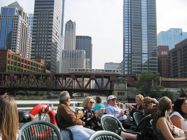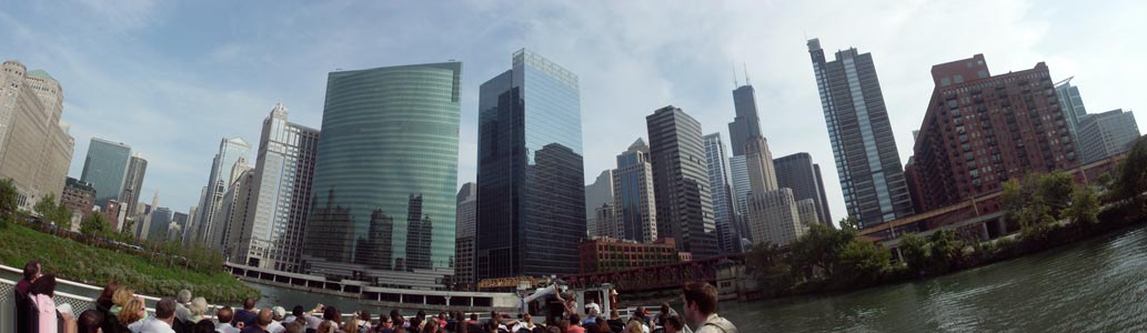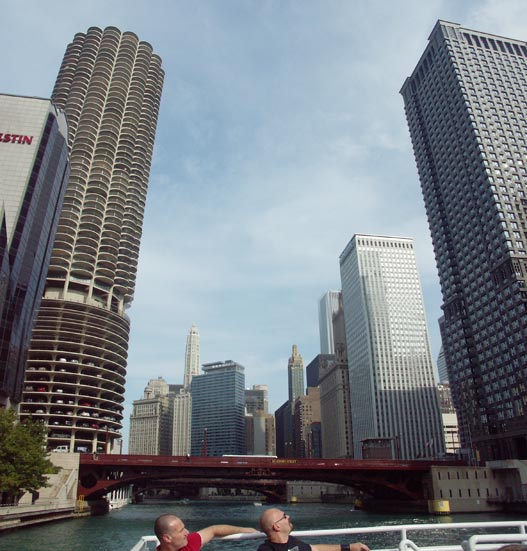 На выходные у нас опять были гости – коллега Сергея из Симферополя. Поэтому в очередной раз пришлось побороть свою лень и посетить несколько пунктов “обязательной программы” – деловой центр Чикаго, центральный парк, набережную реки. На этот раз отличие было только в том, что мы катались по реке уже на другом катере, который не выходил в озеро (поэтому мы остались сухими 🙂 ), зато показывал больше архитектурных достопримечательностей вдоль реки Чикаго. Экскурсовод подробно рассказывал про историю возведения каждого здания. Понравились разводные мосты, которые тут наблюдаются в большом количестве – даже видели сам процесс разведения мостов, который устроили для того того чтобы парусники смогли пройти по реке.