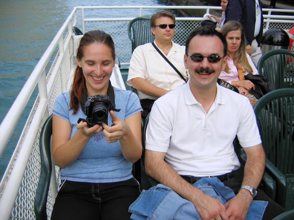 День был пасмурный, но дождик покапал только немного, и уже в конце нашего путешествия. Людей было гораздо меньше чем в прошлый раз – курортный сезон уже заканчивается. Поэтому мы имели возможность выбрать любое место на моторной лодке – она была наполовину пустая. Нам хотелось ощущений поострее, поэтому мы сели на самые передние сиденья. Как оказалось не зря – как ни странно, те кто сидели за нами, намокли больше – нас защищало от воды стекло, поэтому волна пролетала над нашими головами и накрывала пассажиров сзади. Правда в середине путешествия капитан сказал чтобы мы сильно не расстраивались, что остались сухими, потому что он только начал свои маневры :). Лодка разгонялась до 70 км в час, а потом резко поворачивала и останавливалась, врезаясь в воду. Поэтому фотографирование происходило в экстремальном режиме – надо было успеть заснять достопримечательности, не намочив фотоаппарат.