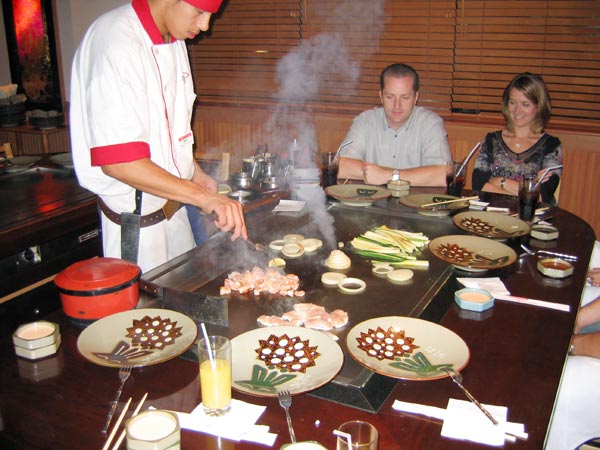 Вечером сходили в японский ресторан, правда повара там становятся все менее японские и все чаще не попадают при жонглировании разными предметами – лопатками, хвостами креветок и т.п. Но море-продукты все еще готовят хорошо :).