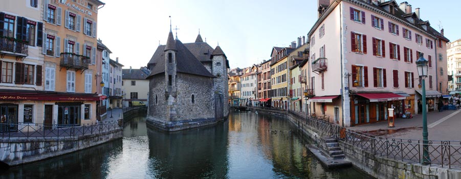 Название улицы, на которой находится наш отель, состоит из 8 слов (хорошо что слово rue – улица – я уже знаю и его при поиске не учитываю 🙂 ), так что с трудом в GPS нахожу нечто подобное, содержащее максимальное количество совпадающих слов :). Останавливаемся в отеле – хороший простой отель, без лишних наворотов, всё чисто и удобно. Номер с видом на небольшую речушку, протекающую через центр города и впадающую в озеро с угадайте каким названием – правильно, Аннеси, тут всё так называется :).