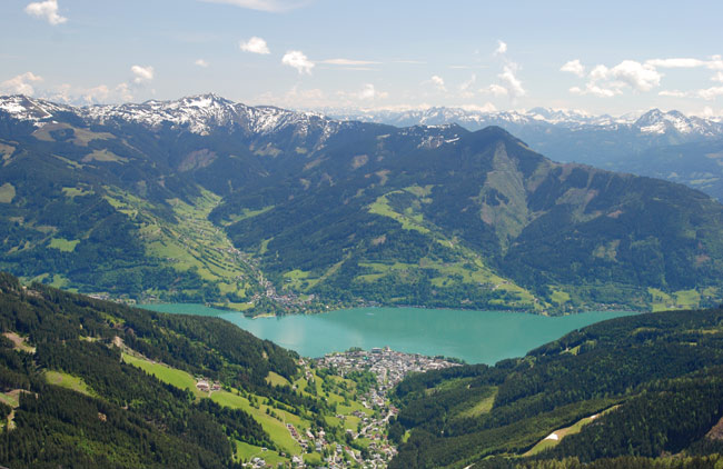 на мобиле – приветствуем вас в мобильной сети Германии. Потом так же незаметно проникли обратно в Австрию и через 2 часа были на месте, в городке с ничего для меня не значащим названием Целл ам Зее (Zell am See) – я специально заранее посмотрела как оно произносится, так как у меня не было на этот счет даже никаких догадок. На машине мы бы сделали это расстояние за час, не больше, дороги тут хорошие и относительно ровные даже в горах, это вам не Испания :). Хотя нет, наверное не меньше чем за три часа – потому что останавливались бы на каждом повороте и фотографировали, дорога была действительно очень красивая 🙂