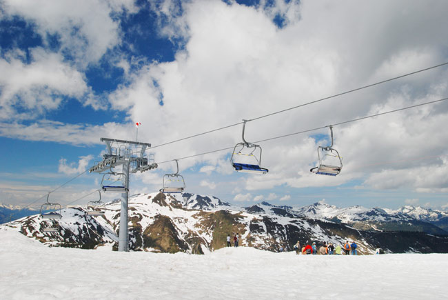 Сразу пересели на другой автобус, потом на канатку и наверх, на гору Шмиттенхох – пока еще легко произнести название, дальше будет хуже :). Наверху, несмотря на то что еще во многих местах лежит снег, довольно тепло и я даже хожу в футболке, радуясь возможности благодаря большой высоте и снегу максимально быстро загореть в этом естественном солярии на всё предстоящее лондонское лето. Правда сразу предусмотрительно намазываемся солнцезащитным кремом чтобы завтра не напоминать индейцев из племени краснокожих :). Эх, вместо зимних шапок панамки надо было брать…