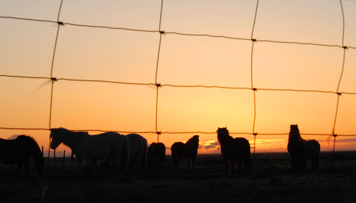 Вокруг безжизненные поля и редкие фермы с лошадками. Лошадей в Исландии много, одна лошадь приходится на 5 жителей острова. Зачем их столько – не понятно, вроде для хозяйственных целей они уже давно не используются, а для спортивной езды столько не надо. Лошади в Исландии особые, низкие и выносливые, больше напоминающие пони. Очень красивые, встречаются экземпляры просто невероятных раскрасок: