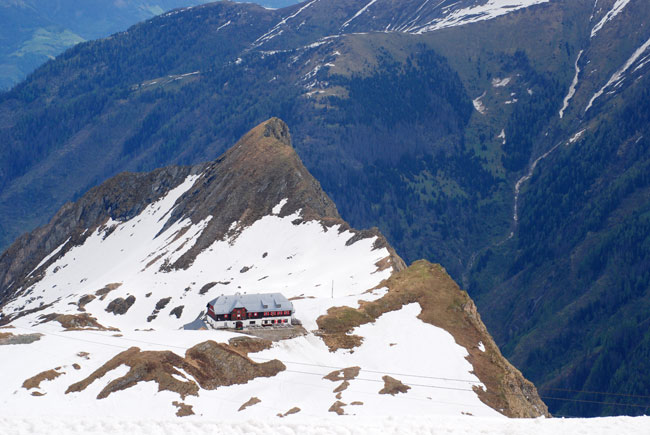 Но мы все-таки поднялись на канатке до той точки, до которой еще можно было подняться без лыж – а это было уже около 3 тысяч метров. Горное озеро, которое мы так надеялись увидеть, выглядывало только узкой каемочкой из-под снега. О том, чтобы идти куда-то дальше, через перевалы, на огромное рукотворное горное озеро, которое считается чудом технического прогресса, даже речи не было. Сейчас здесь предлагается только один вид развлечений – езда на лыжах. Лыжников очень много (а что же тут бывает в сезон!), трассы на редкость хорошие, сюда съезжается покататься народ со всей Европы. Со стороны это занятие выглядит довольно заразительно, и даже в какой-то момент хочется проехаться самим, но после попыток научиться ездить (или хотя бы стоять 🙂 ) на лыжах в Карпатах, я уже знаю что это гораздо сложнее чем кажется. Да и вспоминается количество народа в Лондоне с перебинтованными ногами и руками после лыжного сезона, не хочется пополнять их ряды, у нас еще очень много планов на эту поездку :).