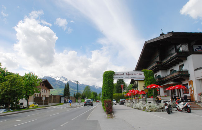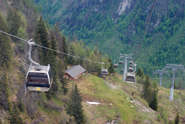 Пики гор хоть и выглядели довольно серо, но были видны, значит ехать нам сегодня на вершину Китцштайнхорн (Kitzsteinhorn). Честно говоря, как именно она произносится, я узнала уже только сейчас из интернета, когда писала этот отчет :). К счастью название деревушки, где находится подъемник, произносится гораздо проще, а в самой кассе подъемника не пришлось произносить это название – так как все равно других вариантов нет, там только одна вершина 🙂