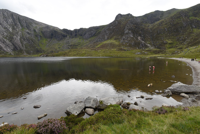 Вообще на озеро Llyn Idwal второй раз можно было не заходить – тропа идет, минуя озеро, прямо на парковку. Но для нас на протяжении почти всего спуска этот пляжик на озере виделся как земля обетованная, мы готовы были бежать (вернее, хромать) туда из последних сил, лишь бы прильнуть к прохладной водичке…