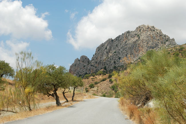 Несмотря на разницу в показаниях маршрута с гугла, карты на GPS и того, что нам советовали служащие туристического офиса (и интуиции, а как же без нее! 🙂 ), я все-таки вывела некое “среднеарифметическое” между этими маршрутами и мы поехали, решив, что ближе к каньону на него обязательно будут указатели. И действительно, первый указатель нас повел через какую-то, хоть и “типично андалузскую”, но явно не туристической ориентации деревеньку, на которой мы чуть не застряли на узких улицах, ожидая, пока водитель машины, преградившей нам путь, вдоволь наговорится со своими односельчанами :). И дальше в горы, по сомнительной, местами асфальтированной дороге, по холмам и кочкам…