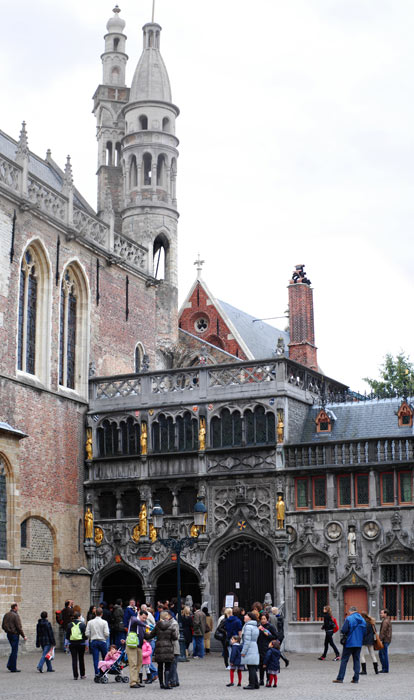 В Брюгге в основном два типа магазинчиков – одни уже вовсю продают ёлочные игрушки к Рождеству, а другие соблазняют незадачливого прохожего всевозможными шоколадными вкусностями. Да, с гастрономической точки зрения, Бельгия, конечно, соответствует шоколаду. Купить шоколада в Брюгге я не успела – как одержимая, в оставшиеся пол-часа свободного времени, я бежала по 366-ти ступенькам винтовой лестницы, чтобы с 80-метровой высоты колокольной башни (а это почти 3 девятиэтажки, прошу заметить! 🙂 ) сделать пару панорам города.