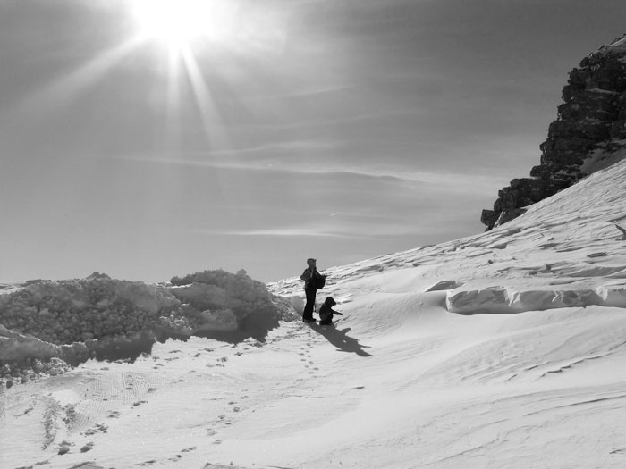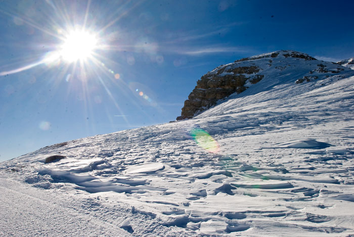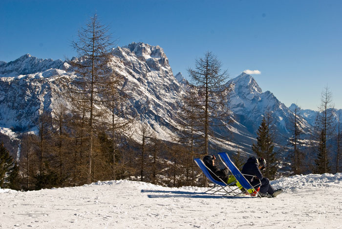 После обсерватории поднялись на той же канатке до следующей станции Ra Valle. На стене вагончика канатки расклеены строгие предупреждения в духе «не вытаптывайте нам снег где ни попадя, не для того мы его из пушек набросали» (причём, надписи только на английском, что характерно ). Да, несмотря на отличный естественный снежный покров, пушки на лыжных спусках работают тут без перерыва – осадки просто не успевают за табунами лыжников, вытаптывающих всё на своём пути .