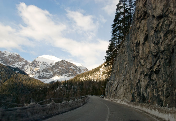 Там же возле озера пообедали (уже, кстати, австрийской кухней, хотя это ещё не Австрия). После обеда поехали обратно, в направлении нашей Кортины…