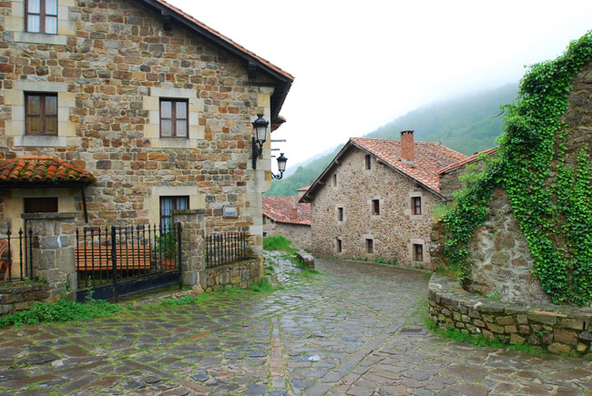 Погода испортилась окончательно. Не могу сказать что это было для меня неожиданностью, так как мы въезжали в район, где нам была обещана погода похожая на лондонскую, с самым большим количеством осадков во всей Испании. Но всегда же хочется надеяться на лучшее и верить что в нашем конкретном случае эта статистика будет нарушена :). Ливень был такой, что на подъезде в первую историческую деревеньку Barcena Mayor не было ничего видно в нескольких метрах от нас. Но я была тверда в своем решении окунуться в испанскую историю (пусть даже попутно и окунуться в буквальном смысле) и решила что раз уж другого шанса увидеть ее в этот приезд не будет, то пойду гулять и под дождем. Видимо погоду удивила такая моя решительность и строго на время нашего пребывания в этой деревеньке он прекратился, а как только опять сели в машину, начался с новой силой.