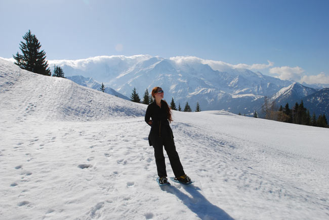 Снегоступный маршрут я бронировала по интернету заранее, но французы есть французы, чтобы получить с них хоть какой-то маршрут, мне пришлось днём ранее извести почти весь баланс на своей мобиле (роуминг однако 🙁 ), чтобы с ними хоть о чем-то договориться. Мы планировали пойти на снегоступах по леднику Мер де Глас, но гиды устремили взор к горам массива Монблан и тоном, не оставляющим надежды, произнесли открывшееся им откровение “нельзя, вы же видите, с Италии идет фёрн”. Кто такой фёрн мы не знали, но на всякий случай устремили взор туда же. Нам никакого откровения не открылось, но по тону проводников мы поняли, что мы туда тоже не хотим.