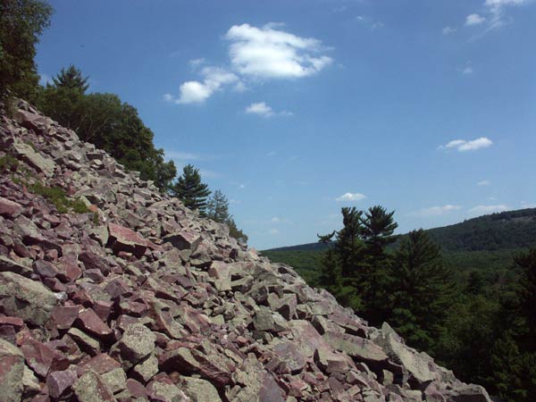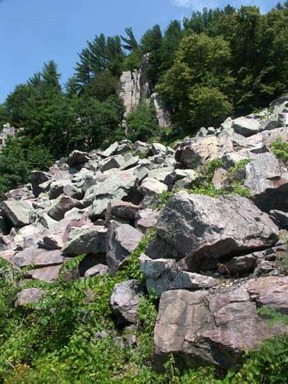 Приехали на озеро. Народ загорает, плавает на лодках, купается – вода довольно теплая. Мы прошли сначала немного вдоль озера, потом посмотрели карту, увидели там какую-то достопримечательность под названием “сбалансированная скала” и полезли к ней. Все более-менее ровные скалы покрыты ровным слоем скалолазов, жадно штурмующих окрестные стенки. Сбалансированная скала стоит на краю обрыва, у основания она довольно узкая и поэтому снизу кажется неустойчивой. Разогретый послеобеденный воздух насыщен ароматами сосен.