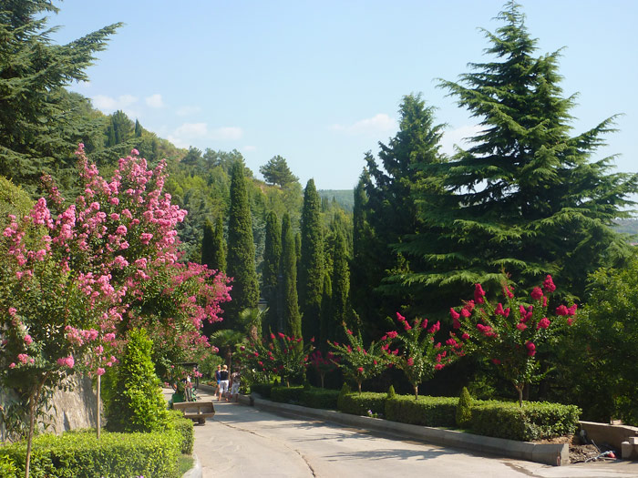 Удивил в этот раз Гурзуф – парки в этом милом южнобережном посёлке охраняют теперь как важный военный объект, серьёзные молодцы с автоматами. Зайти туда можно только в составе экскурсии, стартующей раз в день. В остальное время туда не зайдешь даже за деньги, ну вот просто никак. Говорят, что там всё скупили донецкие ребята. Отвратительно, если честно.