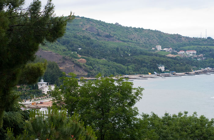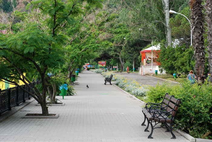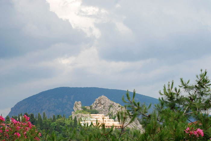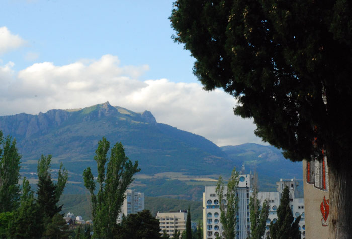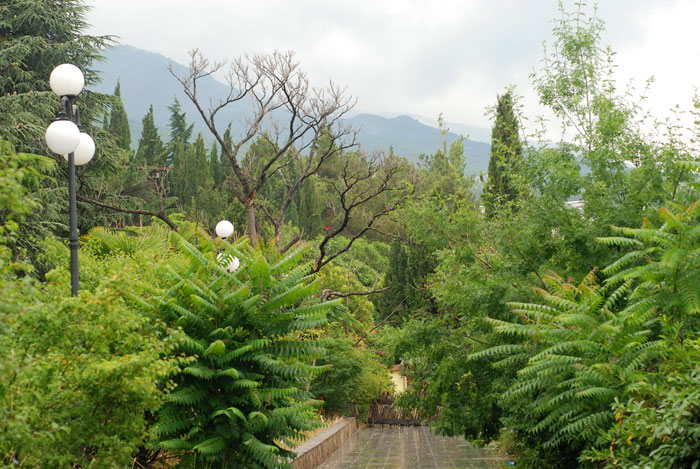 Собственно Партенит, парк санатория Крым (в основном все фото в Партените на фоне нижней части спины Медведь-горы):