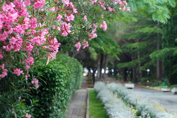 Единственный парк и тот закрыт для публики (попасть туда можно только с экскурсией, стартующей два раза в день). И правильно, нечего топтать тропы, по которым ходят уважаемые, отдыхающие в соответствующем санатории ходил сам Пушкин.