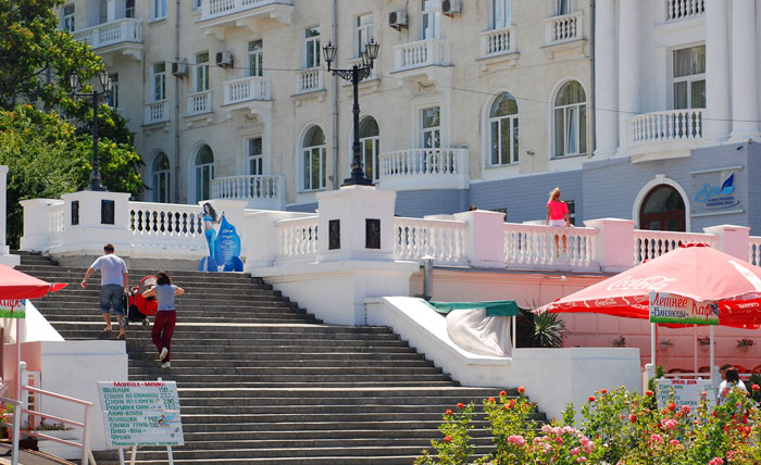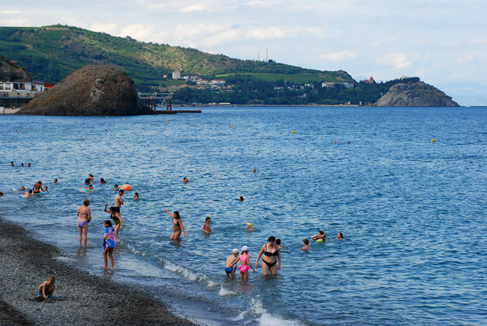 Многие удивлялись, почему мы летим в Крым аж на полтора месяца… Действительно, в следующий раз не полетим на полтора, а полетим… сразу на всё лето – потому что в Англии летом делать решительно нечего. В этот раз в Крыму примерно треть времени мы провели на море: 10 дней на южном берегу в Партените и окрестностях, 5 дней на западном берегу в Евпатории и 1 день в Севастополе.