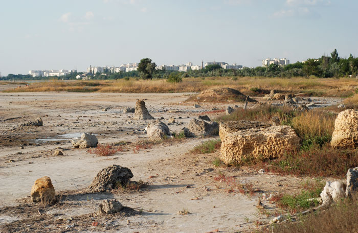 … и лунными ландшафтами грязевого озера Мойнаки: