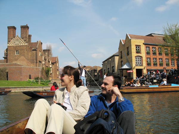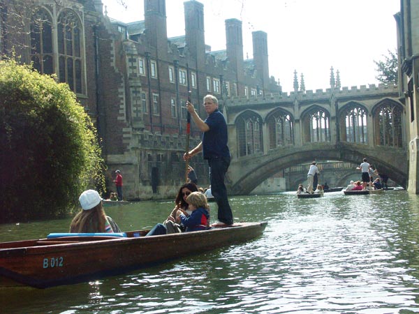 сами колледжи в другой раз и отправились в плавание на… настоящих гондолах по реке. Нас вчетвером усадили в небольшую длинную лодку, выделили молодого парня – гондольера, вероятнее всего, студента из местного университета – и он нас повез по реке. Река была довольно узкой и движение на ней очень оживленным, так что мы постоянно сталкивались с другими лодками – особенно теми, что управлялись гондольерами-любителями :). Виды с реки конечно потрясающие – можно рассмотреть все достопримечательности, многие здания стояли практически в воде. Гондольер по ходу рассказывал историю зданий и колледжей, сказал что в одном из них снимали фильм Гарри Поттер.