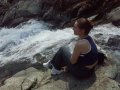 головой ушла в реку :). Я просто не могла ожидать что там так глубоко, а зацепиться не успела… В общем, пару секунд я имела возможность послушать стремительное течение над моей головой и почувствовать себя частью этой бушующей стихии 🙂 Когда я выбралась на берег, все вокруг уставились на меня в оцепенении. Не знаю почему, но моя первая реакция была – я рассмеялась и все вокруг сразу расслабились и подумали что я специально прыгнула в реку – наверное потом будут легенды ходить об этих причудливых русских, которые купаются в 5-градусной воде в водопаде :). Мне это происшествие казалось очень забавным и мне даже понравились те ощущения, что я испытала под водой. Еще больше мне понравилось как Толик описывал потом все это – я настраиваю фотоаппарат, поднимаю глаза – Вики нет, она просто исчезла. И я умом понимаю что ей негде прятаться, но ее просто нет, испарилась!