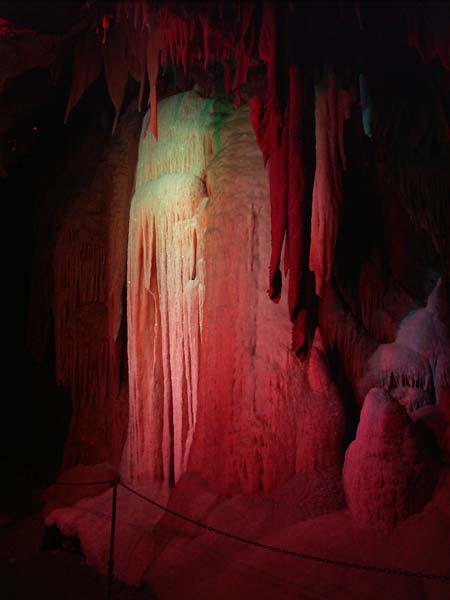 понравилась, особенно поразили даже не сами природные чудеса, а то, под каким соусом тут это все подается. Один и тот же натек сначала подсвечивают с одной стороны, потом с другой, потом вообще включают цветное освещение, которое высвечивает разные его части в разные цвета, создавая совершенно причудливую и сюрреалистичную картину, дополняемую блестящими кристаллами кварца. Одно плохо – экскурсовод куда-то спешил и я, учитывая то что еще пыталась фотографировать, не все рассмотрела в достаточной мере (сейчас досматриваю на своих же фотографиях 🙂 ). В этой же пещере в нагрузку мне бесплатно дали билет в какую-то галерею посвященную истории США, но в этот день меня больше интересовала история миллионолетней давности и по большей части подземная 🙂 Так что посмотрев на местную уменьшенную копию статуи свободы, я отправила в путь. Итак, тихие зеленые проселки сменились опять 75 милями в час, и через 50 миль я была в…