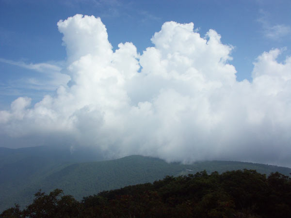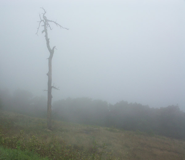 Hawksbill Mountain – гора с наполовину непереводимым названием, будем считать гора Сокол. Я только успела обрадоваться, что путь туда составляется всего 2-3 километра, как вдруг меня окликнул местный лесник, дал мне карту местности и убедил, что пойти другим, в 3 раза более длинным путем, это гораздо интересней. Зашла я, следуя его указаниям, в болото, или просто тропа шла по руслу реки, уж не знаю. Обещанных красивых скал я так и не видела, зато отчетливо понимала что эта тропа вместо того, чтобы просто подняться на вершину, наматывает круги вокруг 🙂 Но в конце концов я вышла на вершину, вид оттуда открывался потрясающий. С востока начали наступать облака и окрестные холмы и долины изредка накрывались пушистым покрывалом тумана. На вершине