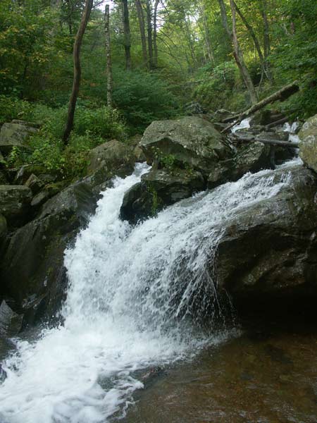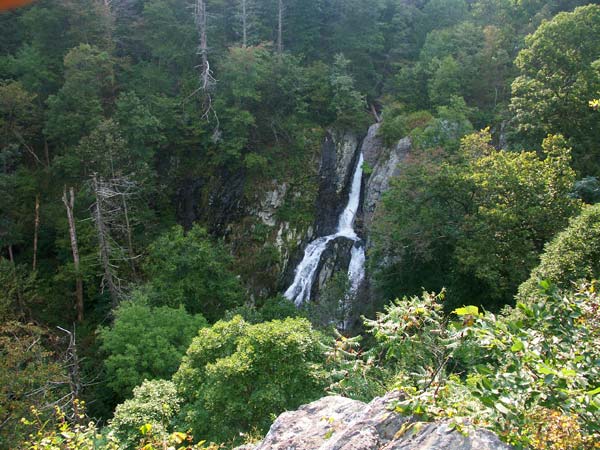 только www.google.com :). Ладно, я отвлеклась. На этот раз прогулка к водопадам очень понравилась – дорога была приятная, вдоль реки, от которой веяло утренней свежестью. Водопады были симпатичные – ничего сверхъестественного, но красиво. Меня впечатлило, что очень много пожилых людей упорно идет куда-то, опираясь на палочки и преодолевая подъемы, при встречах всегда улыбаются и говорят «hello». Следующий водопад я собиралась посетить – Big Falls, самый высокий водопад в парке – 93 фута (тут уже интуицией мне было не обойтись и пришлось посмотреть формулу пересчета – это примерно метров 30). Но не посетила, видно не судьба… Остановилась я на одной смотровой площадке, посмотрела на гордо возвышающуюся вершину вдали, и прочитала на информационном стенде, что туда ведет относительно нетрудный подъем, и это самая высшая точка парка. Минуту поколебалась, выбирая между высшей горой и самим высоким водопадом, а потом решила, что водопадов у меня было уже достаточно, и они все похожи друг на друга, так что…