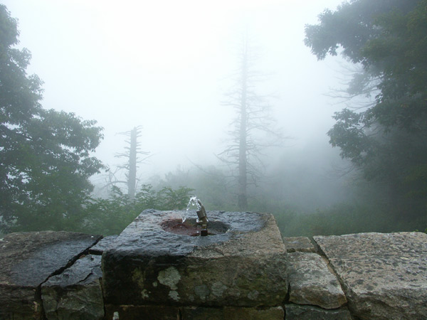 находился заботливо сделанный добротный навес от дождя. Я себе живо представила, во что бы у нас превратилось подобное строение в таком диком месте – мягко говоря в «М/Ж». А тут – все чисто и опрятно, даже стены не расписаны народным фольклором. Посидев около часа на вершине (на этот раз под музыку испанской гитары), сбежала обратно по короткой тропе, которая у меня заняла всего 15 минут 🙂 Внизу была моя любимая погода – на расстоянии 10-ти метров ничего не было видно. Поэтому мой дальнейший путь существенно замедлялся постоянными остановками на смотровых и фотографированием причудливых силуэтов в тумане. На одной стоянке сидел мужик, увешаный какими-то невообразимыми приборами, подключенными к трем ноутбукам. Что он делал, для меня осталось загадкой, но вид у него был серьезный, как и корзинка с припасенной едой 🙂 Какой-то жук на переднем стекле так и проехал со мной бесплатно до выхода из парка – я подумала что сгонять его дворниками это негуманно 🙂 А мне пришлось выехать из парка чтобы посетить…