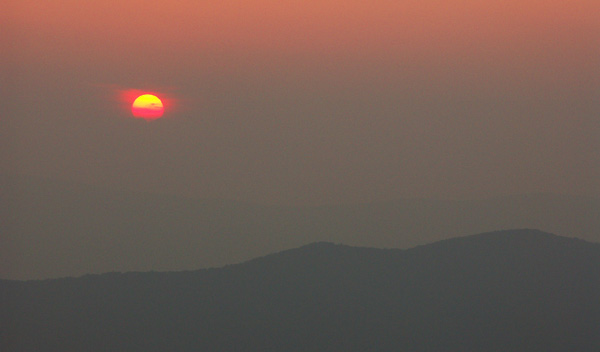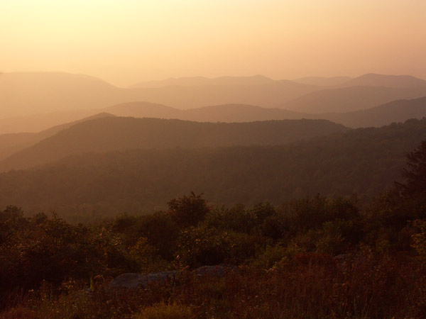 Закат был очень красивый, а под музыку Gregorian это было что-то фантастическое. Западные пейзажи, открывающиеся с Skyline drive – единственной дороги, проходящей через весь национальный парк, очень симпатичные – аккуратные гряды холмов, переливающиеся до самого горизонта как волны огромного моря. На закате краски еще более смягчаются и мне всегда