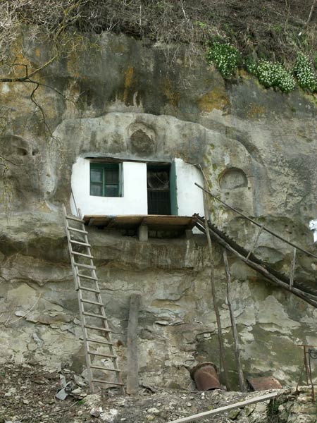 Встала в 10 утра, на улице парило и явно собирался дождь… Но и это не проблема, взяла зонтик и через 1,5 часа была уже около Успенского монастыря. В общем-то, у меня программа была небольшая – монастырь и дворец-музей. Но погода просто располагала к прогулкам – было очень жарко и в Бахчисарае уже цвели деревья. Поэтому я решила прогуляться в сторону Чуфут-Кале. Ну как-то прогуляться и повернуть назад у подножия показалось мне странным и я решила уже подняться. Побродила по пещерному городу, пофотографировала пещеры снаружи и изнутри.