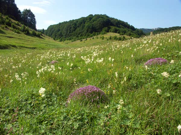 На утро на меня совершил нападение дикий клещ. Встал вопрос – чем его оттуда выманить. Вазелина ни у кого не было, жира тоже… Вдруг кого-то осенила идея что можно использовать жир из рыбных консервов для этого дела. Так лежала я минут 10, намазанная скумбрией, потом мне это надоело и я сказала что хватит кормить это насекомое и я его убью голыми руками, т.е. булавкой. Пока готовилась к операции – протирала место спиртовыми тампонами, клещ самоуничтожился, т.е. исчез. Бесследно. Но то ли от него, то ли от других покусов (коих было большое количество на моих ногах), нога у меня стала разбухать не по часам, а по минутам. Через какое-то время икры превратились в большое красное пятно и даже ступать было больно. Вышли со стоянки мы рано, по пути пособирали листья мяты, потом чабрец, растущий на склонах аккуратными пестрыми кустиками. На склоне спрятали рюкзаки и пошли на Караби уже налегке. Хорошо хоть все остальныe ушли немного вперед и не слышали моих эмоций по поводу проходжения через поле крапивы (я была в шортах и майке :). Караби было заселено дикими сборщиками трав, которые там обосновались судя по всему всерьез и надолго – брезентовые
