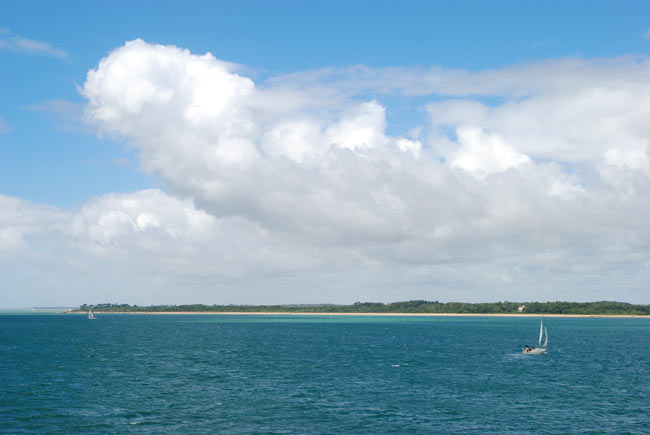 Сначала какие-то заводы, трубы, пустоши, ближе к острову – парусники, чайки и изумрудного цвета вода (сейчас смотрю на фотках и сама не верю, что такой цвет бывает в Англии)…