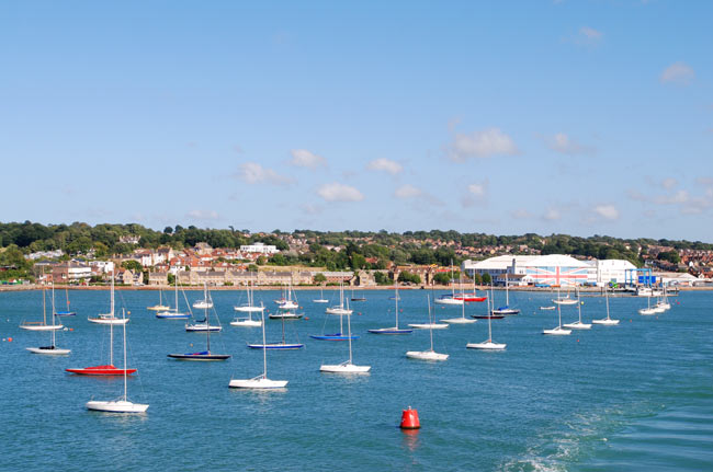 Взгляд пал на остров Уайт, что находится у южного побережья Британии, в ста километрах от Лондона. С “материка” попасть на остров можно на пароме, курсирующем между основными портами южной Англии и небольшими городками острова Уайт. Нам достался самый длинный из возможных маршрутов (16км) из порта Саутгемптон (Southampton), почему именно он – не знаю, это коммерческая тайна нашего тур-оператора, с которым я ездила в этот тур :). Паром идёт час, бОльшую часть которого он движется по длинному заливу, врезающемуся в берег.