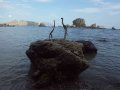 Купались на глиняном пляже 🙂 – в прямом смысле глиняном. Прямо к морю выходят клиняные осыпи и когда заходишь в море, идешь по жидкой глине. Естественно, много людей, которые пытаются излечиться этой глиной, намазавшись с ног до головы 🙂 В море был остров по форму напоминающий… лотос 🙂 Может это просто фантазия у нас разыгралась, но вдохновленные увиденной выставкой бансая на прошлой неделе,мы еще сооружили из каких-то коряг композицию под названием “Два фламинго”.