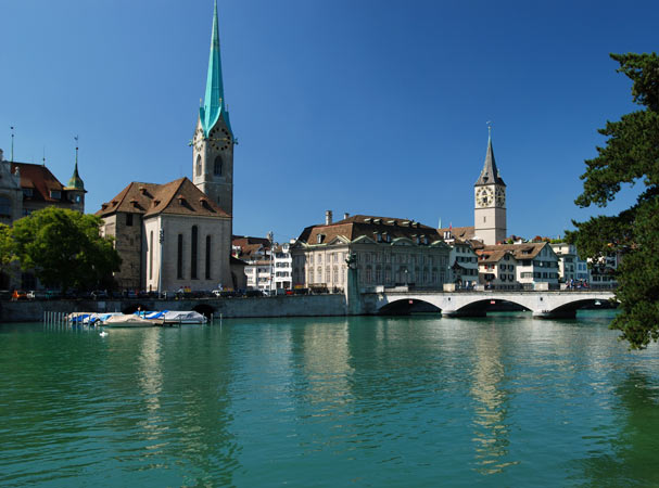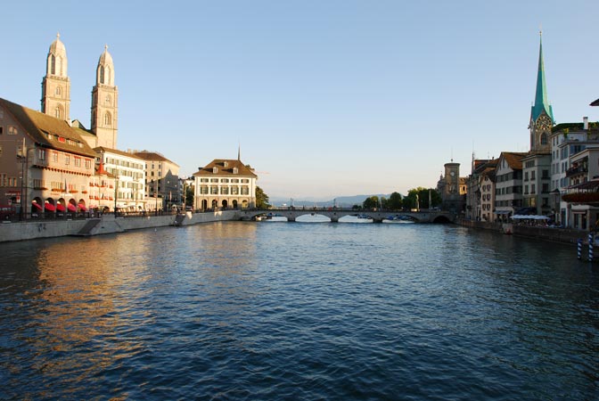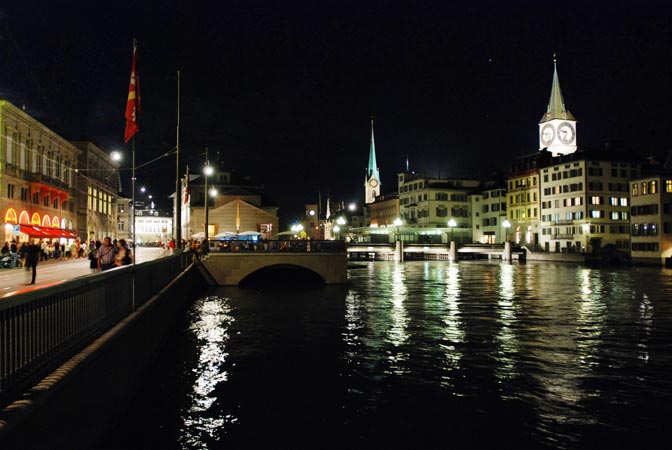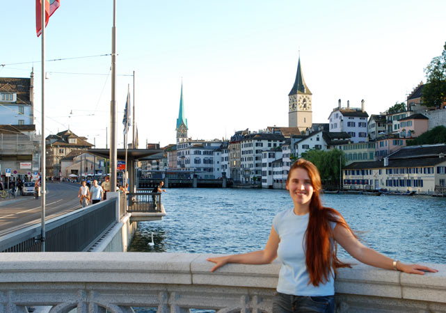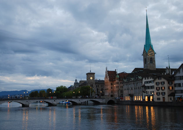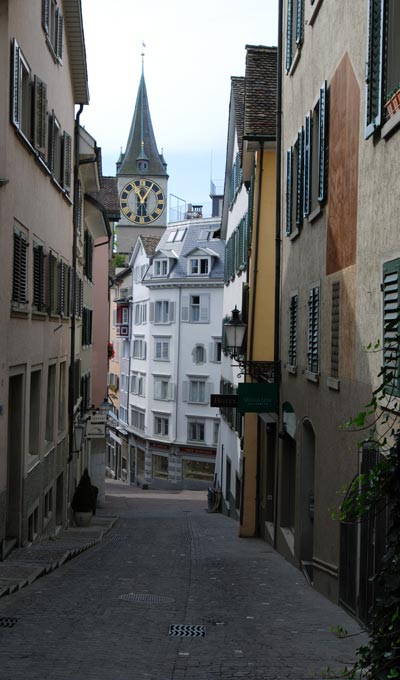 большой в Швейцарии. Скромно так в прошлом году объявленный городом с самым лушим качеством жизни в мире. Старые узенькие улочки, трамвайчики, кафешки и соборы, из которых иногда доносится органная музыка – именно такой мне всегда представлялась континентальная Европа (кстати можно считать что я первый раз оказалась в Европе, если конечно не считать детских впечатлений от Прибалтики и бесчисленных аэропортов западной Европы на пути в штаты). Часов с собой в Цюрихе можно не носить – они встречались нам везде, причем по любым из них можно сверять время – все они идут точно. Когда-то, вплоть до 17 года в Цюрихе отсиживался Ленин, вынашивая свои грандиозные планы. Хотя как такое спокойствие могло вдохновить кого-то на революцию – загадка :).