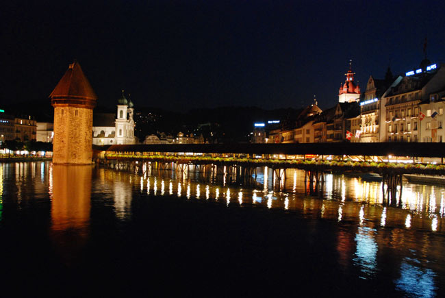 Люцерн – небольшой городок в часе езды от Цюриха (в дальнейшем в рассказе упоминание «небольшой» я буду опускать, потому что больших городов в Швейцарии нет, все остальные еще меньше Цюриха 🙂 ). Тоже старый, со своей историей и достопримечательностями. Основные из которых – крытый Часовенный мост 14 века, со старинной росписью на потолке – как говорится в путеводителе, самая фотографируемая достопримечательность в стране. Несмотря на такую популярность и раскрученность, действительно очень красиво