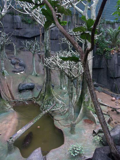 Еще в одном зале, посвященном морским животным южной Америки, злая такая шутка – я подхожу к стеклянной витрине, начинаю читать надпись – “осторожно, большая волна…”. И, не успев дочитать эту надпись, я вижу как на меня действительно обрушивается огроменная волна. Я естественно начинаю убегать оттуда, думая только о том, как спасти свой фотоаппарат – под дружный смех всей остальной публики, стоящей там. А волна оказывается, не долетая до людей, разбивается о почти незаметную стеклянную преграду, и стекает так, что даже брызг не попадает. А те, кто стоит там уже давно, наслаждаются смотреть на реакцию новичков, таких как я, только что зашедших в этот зал :).